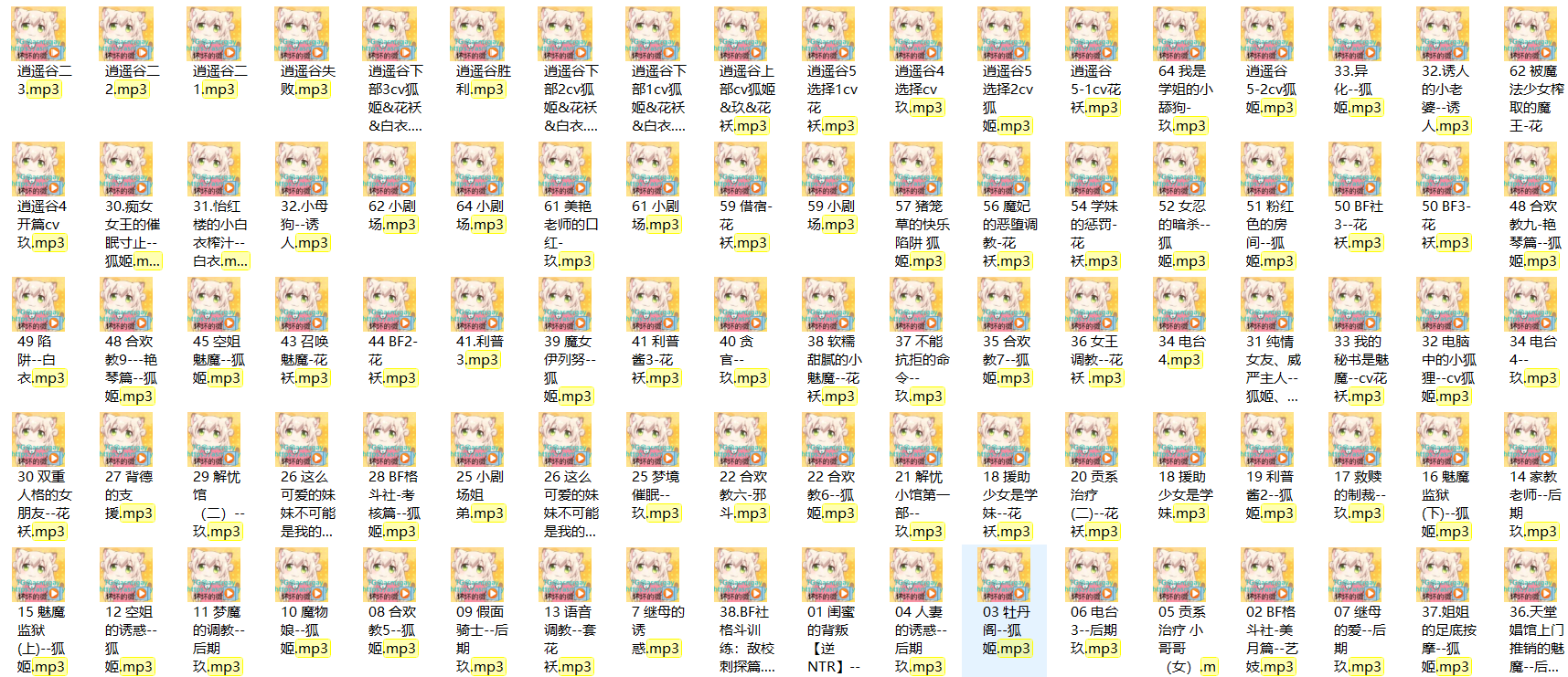訷仕萭花筒系列音頻,汇集各类风格OOPP音频。可在手机和电脑上播放。欣赏前请戴好耳机!此为本系列第013辑,部分资源详情见下图目录。